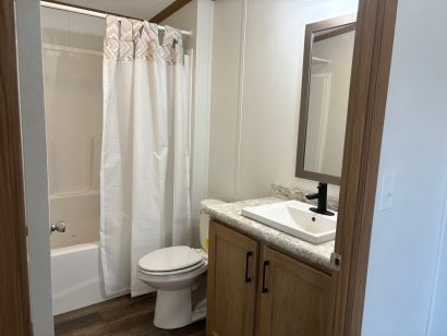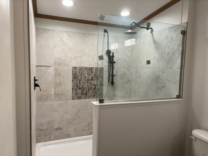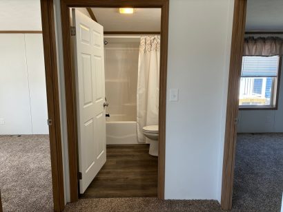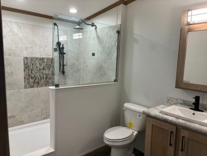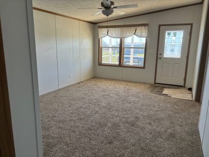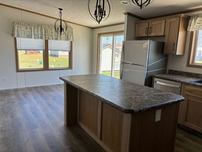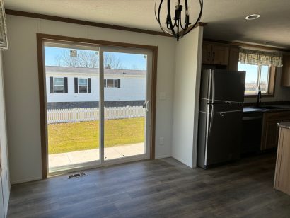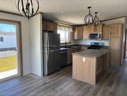 Home comes with island in kitchen, sliding doors off the dining nook out to a patio, 4’x6′ ceramic shower with rainshower fixtures, gas and electric dryer hookups, large front porch
